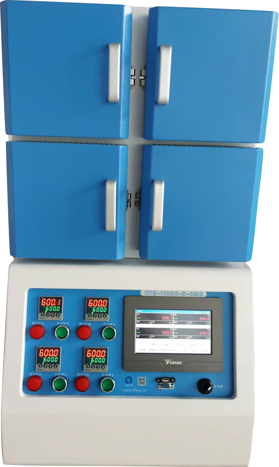 產品概述:KYS-1100C-S-4MG是一款1100℃四通道箱式爐,其可以用于采用高通量方法對多個樣品進行熱處理,最高溫度可達到1100℃,每個加熱模塊都有獨立溫控系統控制,可同時放4個樣品,在不同的溫度下處理;該設備占地小,能耗低,是高校、科研院、材料金屬等企業做高溫燒結、質量檢測用的理想產品。